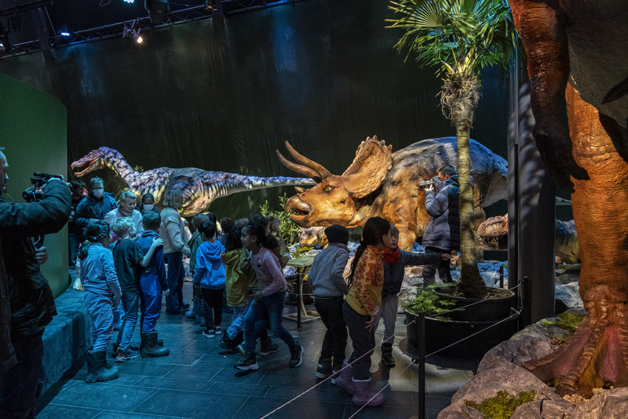 Klasse 2A fra Storhaug skole klippet snoren til det som ifølge direktør Finn E. Krogh er den mest spektakulære dinosaurutstillingen som noensinne har vært presentert i Norge med 15 fullskala, robotiserte dinosaurer.