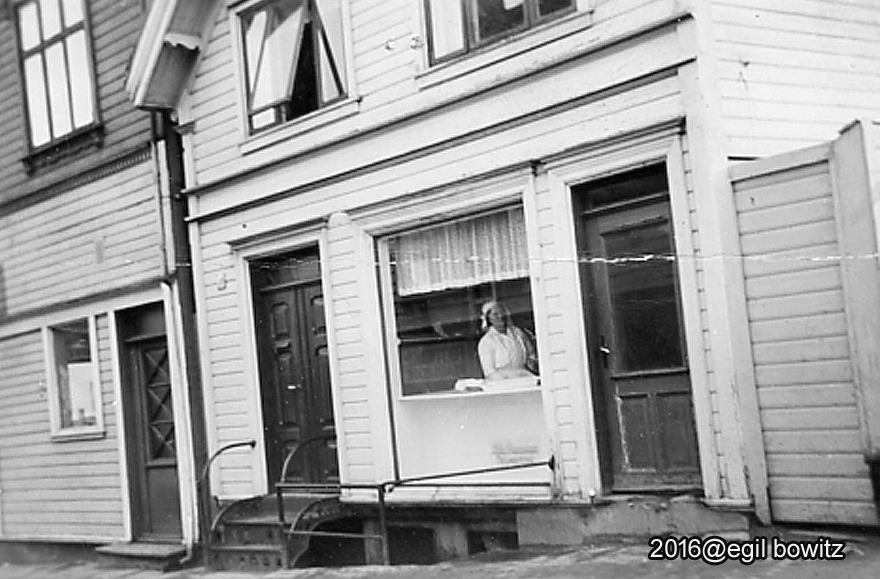 Mor var ansatt hos Rasmussen delikatesse i Øvre Strandgata nummer 10. Hun overtok denne i 1948 og endret navnet til Gabrielle Bowitz delikatesse. Min onkel Leif Bowitz drev på den tid reisebyrå i Kirkegata.