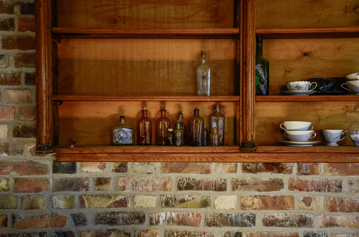 -Lokalene tilhørte sist kunstneren Kjetil Finne, forteller Merete. -Han donerte det originale apotekmøblementet til Museet. Det ble funnet på et lager på Åmøy. Og vi får bruke det! Det blir en naturlig og veldig viktig del i den nye kafeen.