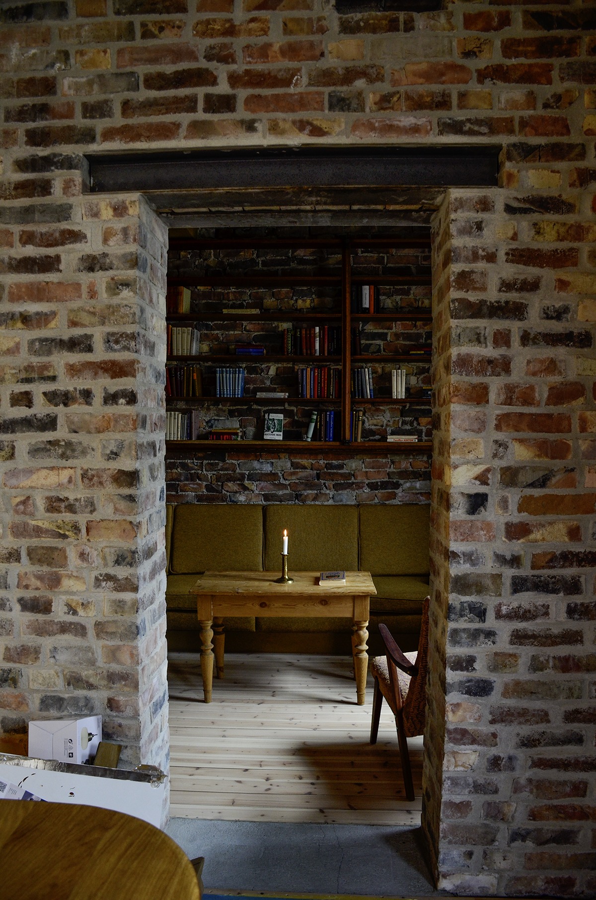 Alle fire, pluss familie og venner, har bak seg et intensivt halvår med omfattende dugnadsarbeid. Lokalene måtte tømmes, plater, tapet, belegg etc. måtte fjernes. Originalgulvene er slipt og lakket matte. Mursteinsveggene er reparert. Alt nytt brystpanel er laget for hånd. Den spesielle gulfargen tok det litt tid å finne fram til.