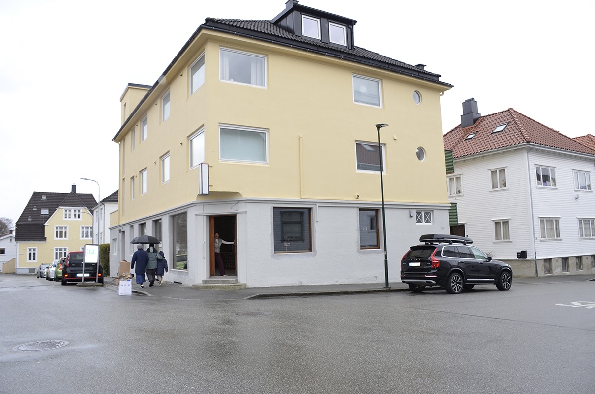 -Jeg har så ofte gått forbi og lurt på hvorfor ingen har startet opp noe akkurat her, sier Merete. -Jeg er fascinert av selve bygget, beliggenheten og spesielt hjørneløsningen. Så ble det lagt ut for salg. Vi brukte ikke lang tid på å bestemme oss og overtok nøklene i juni fjor.